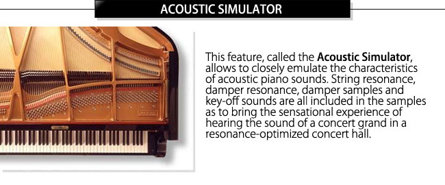 The MLFSS (Multi Layered Full Scale Sound), with its extremely large data size, assigns separate sample data to each portion of dynamic range which is divided into many levels, allowing natural expression of forte and piano. To play it is like to have many different types of high-end grand pianos in one hand, due to its inclusion of diverse grand piano sounds with differing characters.