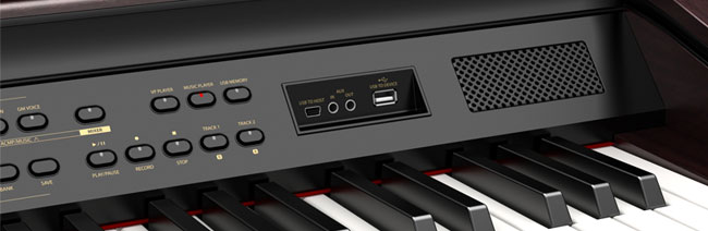 Recording is easily accessible by connecting to external devices (computers, tablets or smartphones) via USB audio, and playing recorded material is just as simple. The piano is also capable of playing music files stored in an MP3 player.